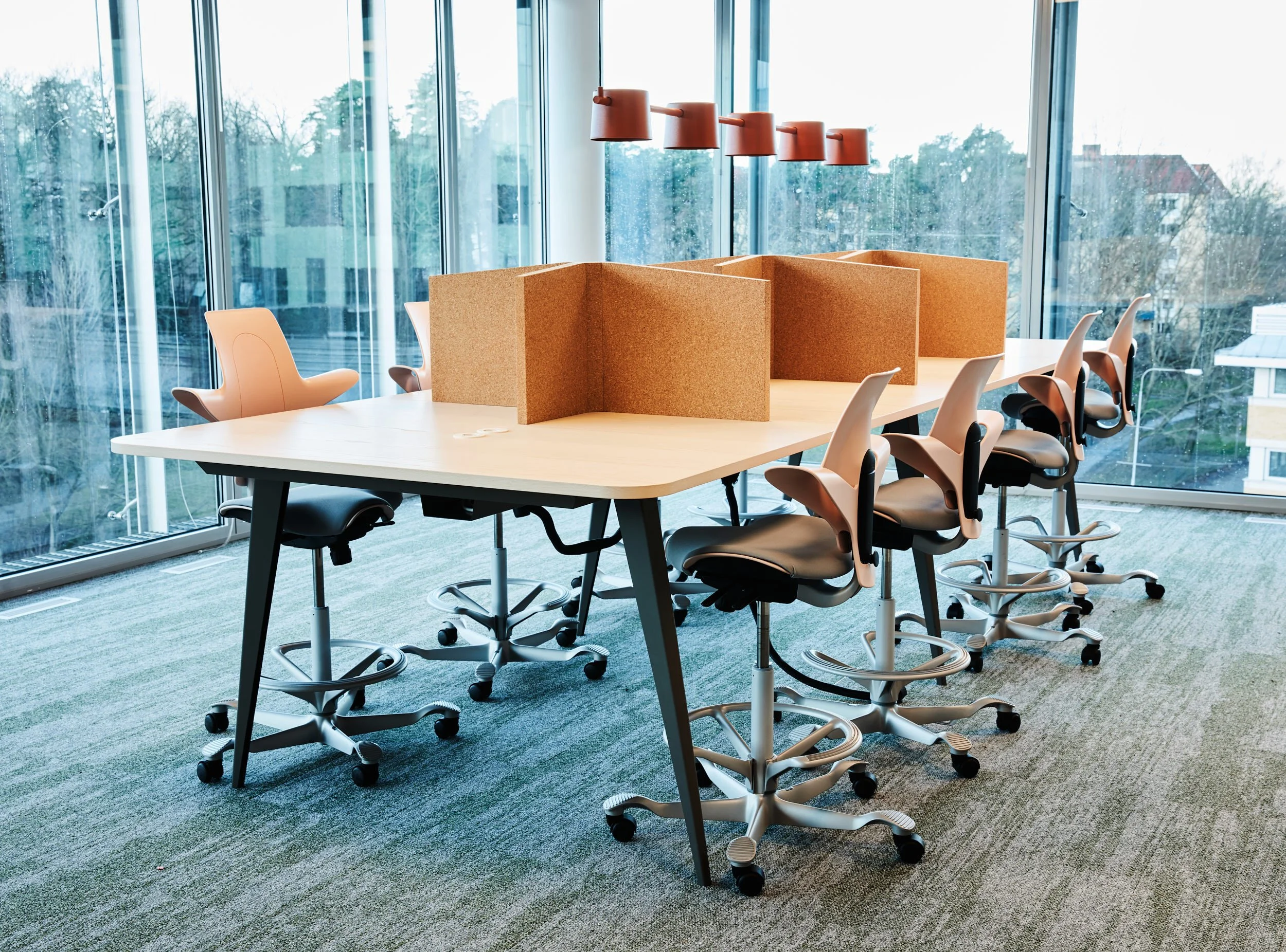The shades are fixed, with the lightsource hidden within a smaller shade in order to minimize glare.